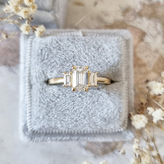 1.0 CT Emerald Three Stone CVD C/VS2 Diamond Engagement Ring