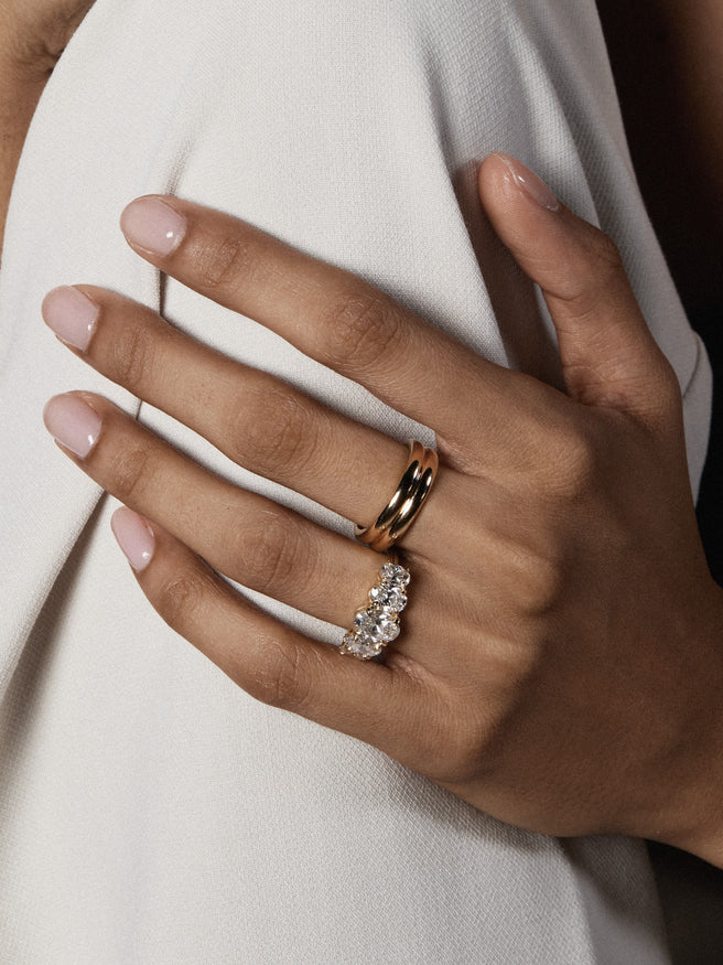 When your moissanite or lab-grown diamond ring is due for a deeper clean, we recommend using a gentle jewelry cleaner as needed. Most cleaners formulated for diamonds and gold are suitable—just choose a trusted option. Be sure to avoid harsh chemicals or abrasive solutions, as these can damage the metal and compromise the integrity of the setting.
