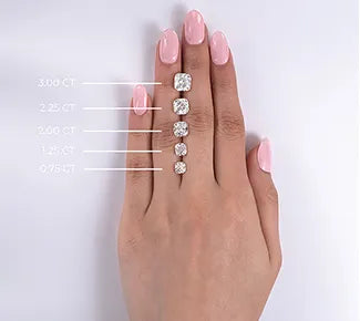Additionally, differences in carat sizes can appear very minimal to the untrained eye. A 0.25 carat diamond will be noticeably smaller than a 2 carat diamond, but the difference in size between a 0.90 carat and a 1 carat diamond will not be substantial.